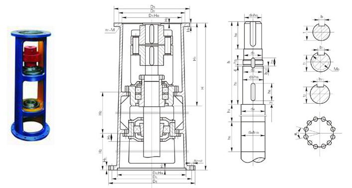 注:图示所注“h”仅与本样本BLD、LC-Ⅱ、DC-Ⅱ系列减速机相配,如选用其他型号或其他厂家减速机,“h”需另行计算。增高后的LSJ型机架其下部空间高度可容纳205、206或207型双端面机械密封。 |